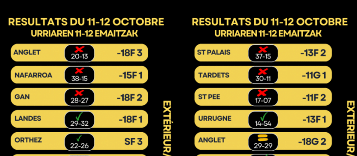 RÉSULTATS DU 11-12 OCTOBRE / URRIAREN 11-12 EMAITZAK