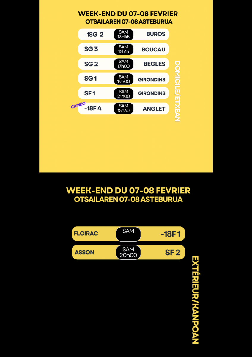 MATCHS DU 7-8 FEVRIER / OTSAILAREN 7-8 MATXAK