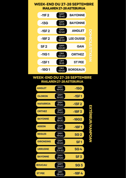 L’entente Cambo/Irisartarrak a réussi un joli exploit en allant s’imposer chez les Girondines de Bordeaux, leader de la poule. L’entraîneur, Txomin Bereau, avait un effectif solide avec le retour de quelques anciennes. Solides en défense, les “Arrosak “ ont su faire la différence offensivement. Le week-end dernier, l’attaque avait été poussive à Lège Cap Ferret avec énormément d’échecs face au gardienne. Il faudra la même constance, samedi prochain pour la réception du nouveau leader, Anglet/Biarritz, invaincu à ce jour. Les côtières semblent solides dans tous les compartiments du jeu, aux “Arrosak” d’élever encore plus le niveau, enfin d’essayer de remporter ce derby important.. Le match aura lieu à Cambo, ce samedi à 20H30. En lever de rideau, L’entente des moins 18 ans verra un autre derby avec la réception de Nafarroa, à 18H30. Les supporters sont attendus nombreux et enthousiastes pour ces deux belles rencontres.