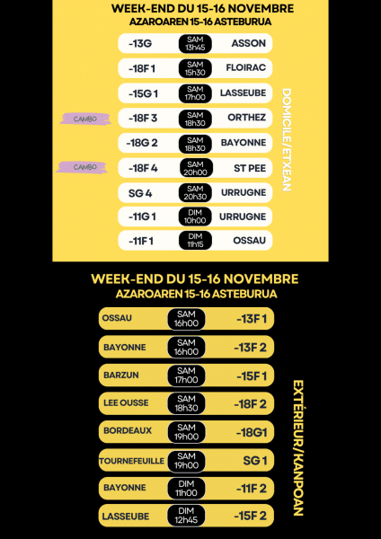 MATCHS DU 15-16 NOVEMBRE / AZAROAREN 15-16 MATXAK