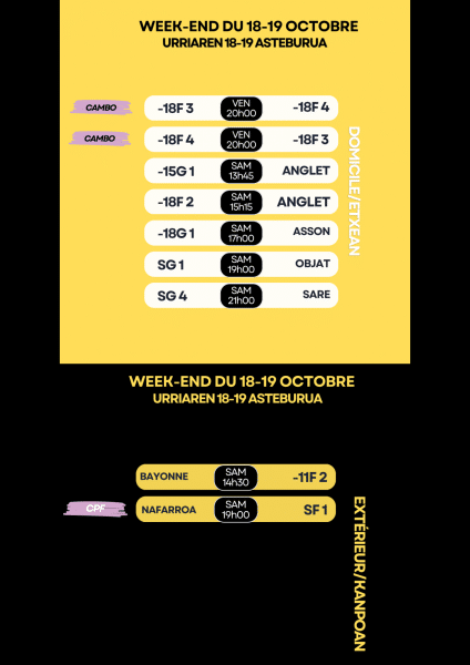 MATCHS DU 18-19 OCTOBRE / URRIAREN 18-19 MATXAK
