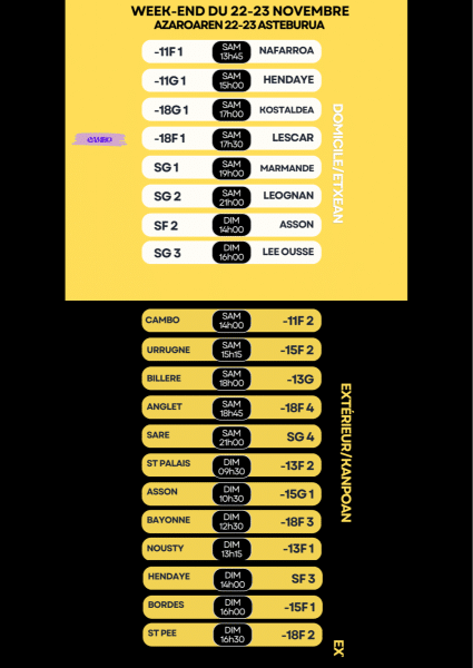 MATCHS DU 22-23 NOVEMBRE / AZAROAREN 22-23 MATXAK