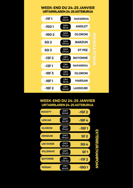 MATCHS DU 24–25 JANVIER / URTARRILAREN 24-25 MATXAK