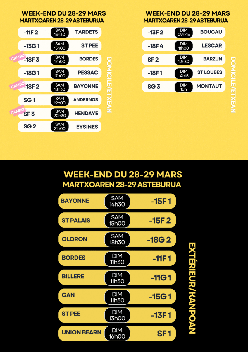 MATCHS DU 28-29 MARS / MARTXOAREN 28-29 MATXAK