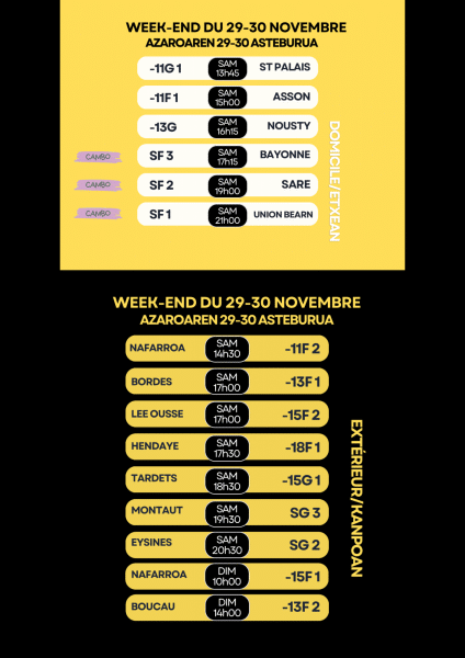 MATCHS DU 29-30 NOVEMBRE / AZAROAREN 29-30 MATXAK