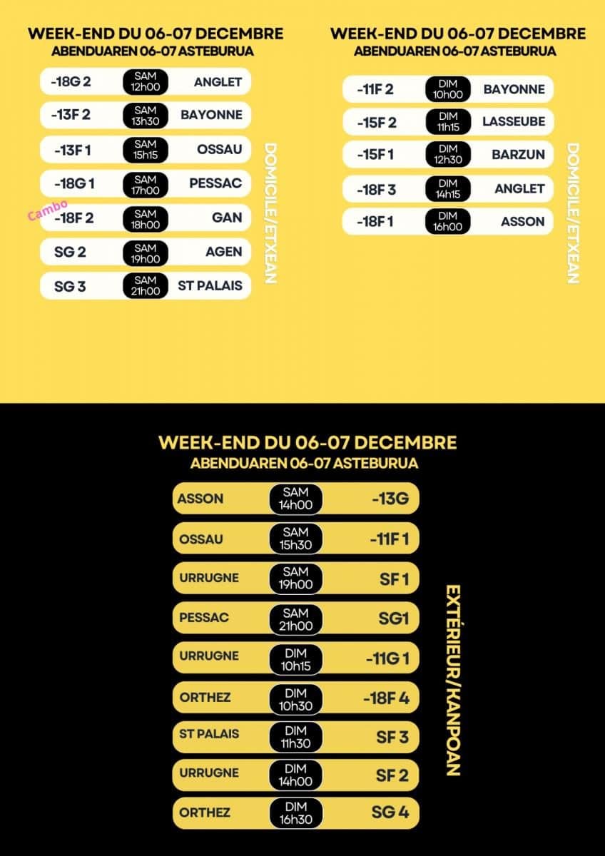 MATCHS DU 6-7 DÉCEMBRE / ABENDUAREN 6-7 MATXAK