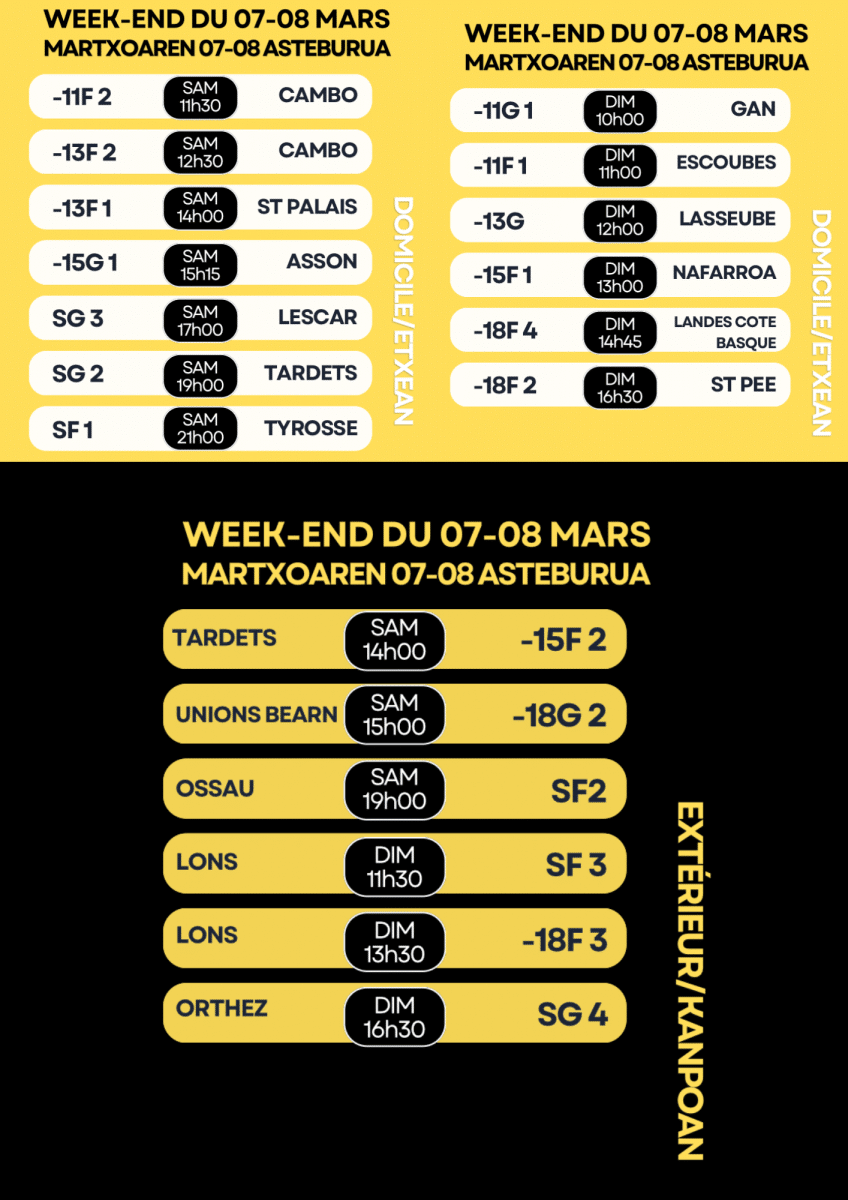 MATCHS DU 7–8 MARS / MARTXOAREN 7-8 MATXAK