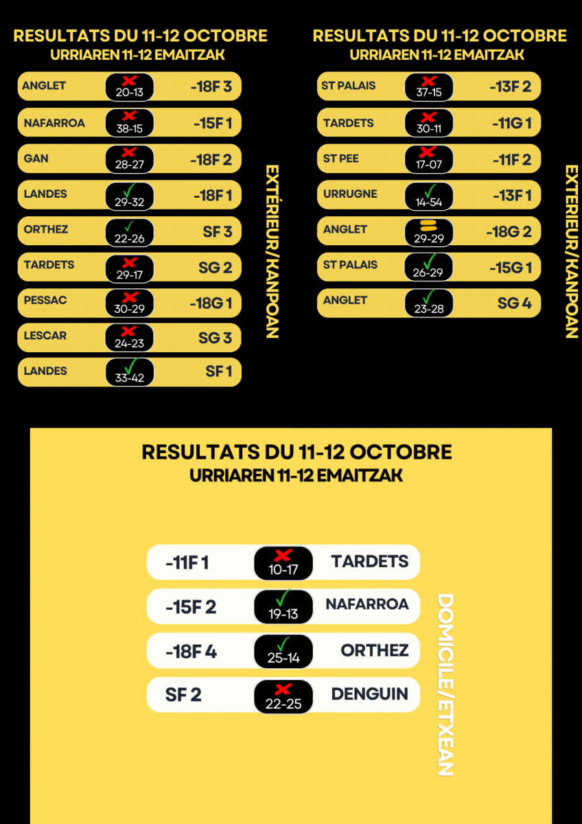 RÉSULTATS DU 11-12 OCTOBRE / URRIAREN 11-12 EMAITZAK