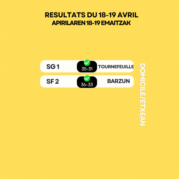 RÉSULTATS 4-5 AVRIL / APIRILAREN 4-5 EMAITZAK