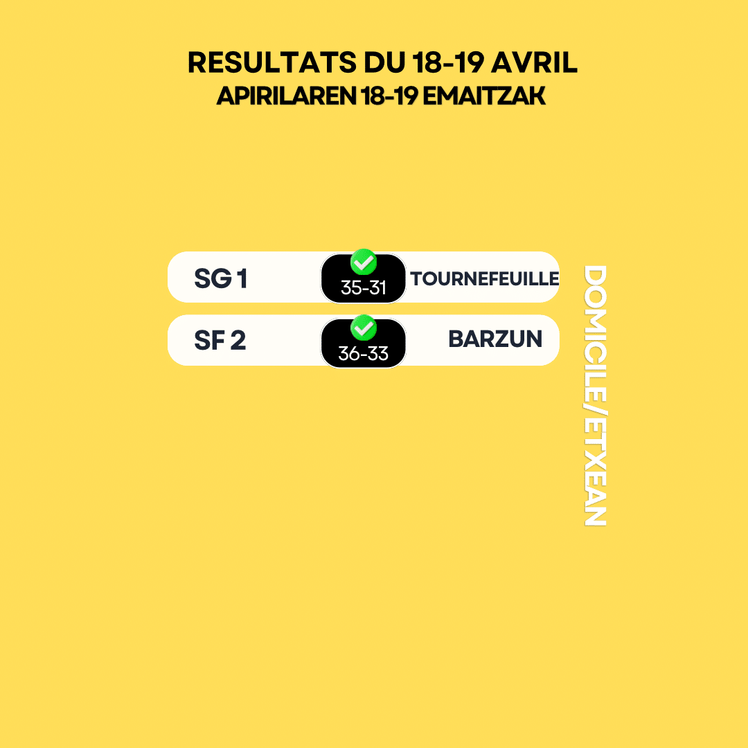 RÉSULTATS DU 18-19 AVRIL / APIRILAREN 17-18 EMAITZAK
