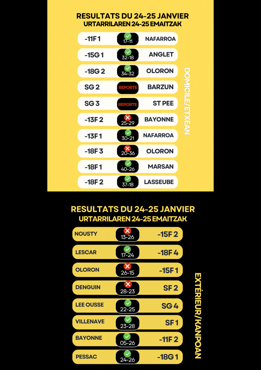 RÉSULTATS DU 24–25 JANVIER / URTARRILAREN 24-25 EMAITZAK