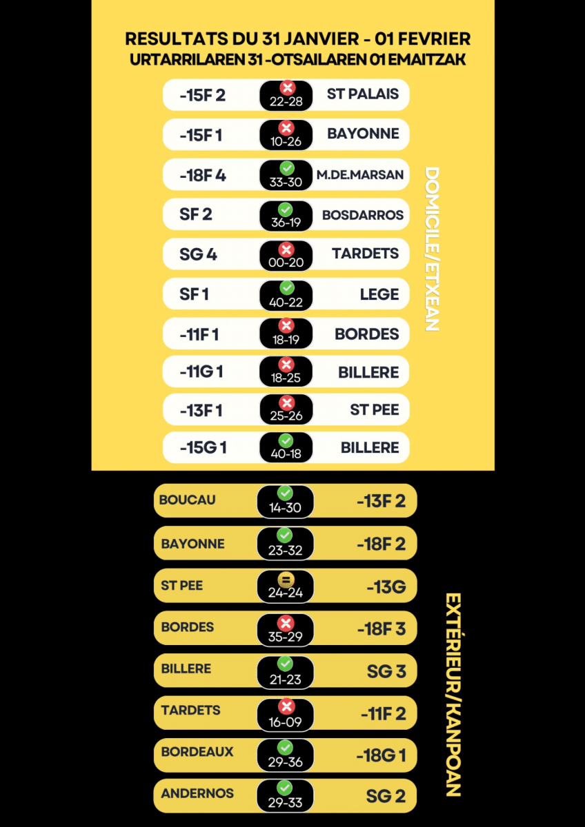 RÉSULTATS DU 31 JAN – 1ER FÉV / URTARRILAREN 31 – OTSAILAREN 1 EMAITZAK Partager :FacebookTwitterImprimer