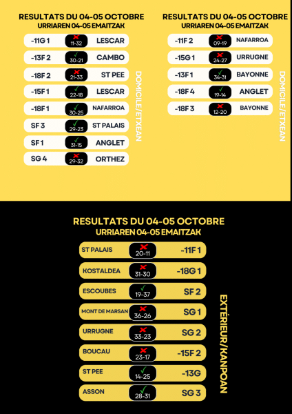 RÉSULTATS DU 4-5 OCTOBRE / URRIAREN 4-5 EMAITZAK