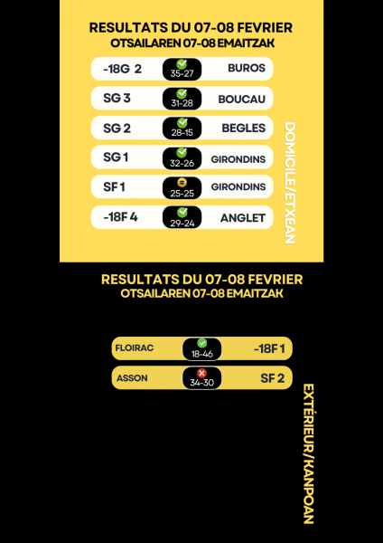 RÉSULTATS DU 7-8 FEVRIER / OTSAILAREN 7-8 EMAITZAK