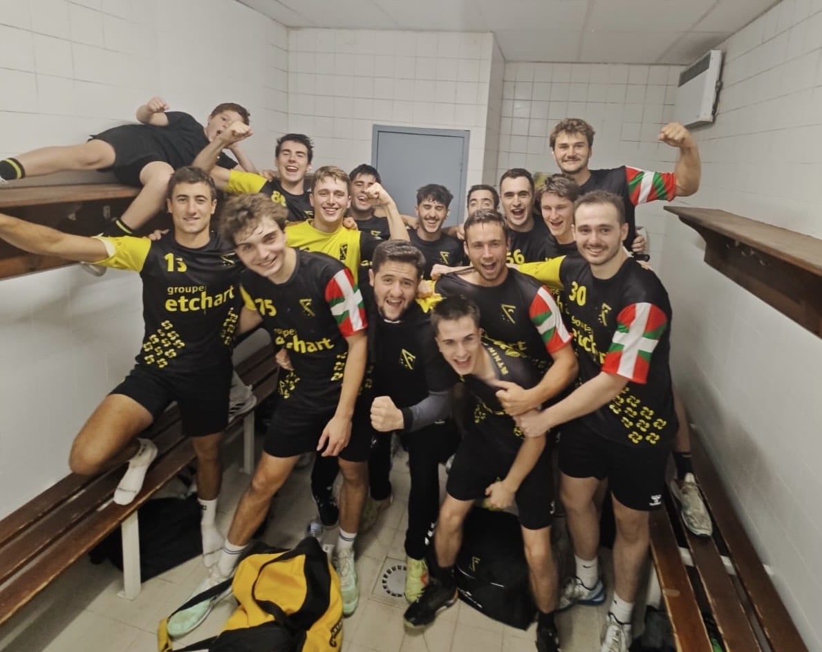 Pour la 5éme journée, les Irisartar recevaient Objat, deuxième de la poule, avec une certaine appréhension. Le retour de deux blessés, Peio Hiribarne et Patxi Agorrody, a donné plus de consistance à l’équipe. Le début de match est équilibré, 3-3 avec 3 buts consécutifs de Xabi Etchebehere, en grande forme (11 buts). Les visiteurs sont plus entreprenants en attaque, et solides défensivement avec un engagement total. Les locaux sont empruntés, et manquent de tranchant et de finition face au gardien d’Objat. Les jaunes font le maximum pour ne pas être distancés, mais ça manque d’efficacité, 13-16 à la pause. Vu la prestation de la première mi-temps, les supporters sont inquiets. Dès la reprise, les Corréziens interceptent le premier ballon d’attaque Irisartar, et le solide pivot Mathieu Baptiste marque en contre, 13-17. Cela a eu le don de réveiller les Bas Navarrais, la défense est beaucoup plus compacte, et les attaques fusent avec les ailiers, Patxi Agorrody et Eneko Iraztorza à la concrétisation . Ils infligent un 7-0 autoritaire, les visiteurs perdent de plus en plus le fil du match, 20-17. Offensivement, les Corréziens ont baissé de régime, la défense Irisartar est rugueuse, et le gardien Andoni Barbier réalise des arrêts importants. Les supporters, tout d’abord surpris par ce revirement, encouragent leurs protégés avec ferveur. Finalement, les Basques s’imposent assez largement, 31-24. Cette victoire fait du bien au moral, avant d’aller affronter le leader invaincu, Andernos, samedi prochain.